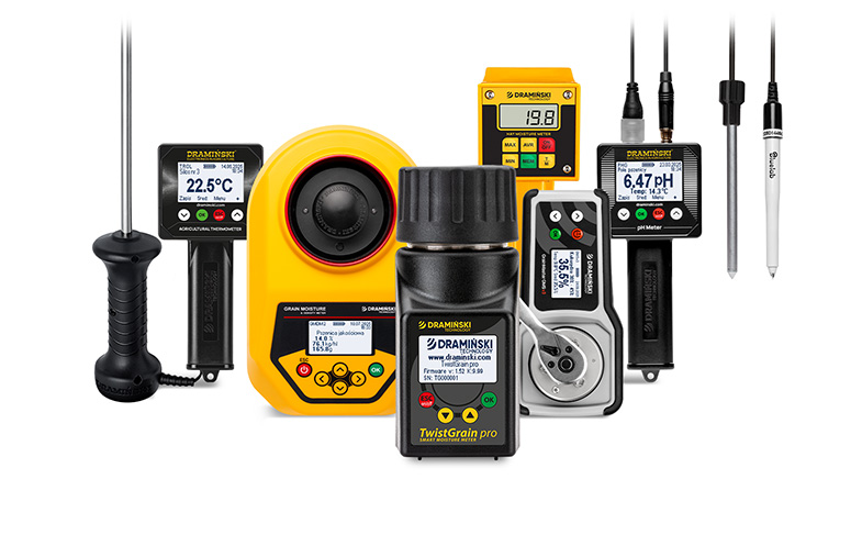 Unsere Feuchtigkeitsmesser zeichnen sich durch hohe Genauigkeit, einfache Handhabung und Langlebigkeit aus, was sie zur idealen Wahl für Landwirte macht, die Komfort, Zuverlässigkeit und Präzision schätzen. Feuchtigkeitsmesser von Dramiński werden auf allen Kontinenten eingesetzt, empfohlen und geschätzt, dank einer umfangreichen Saatgut-Kalibrierliste, die hervorragende Bewertungen von zufriedenen Anwendern erhält, die das Menü in den für sie passenden Sprachversionen nutzen können.