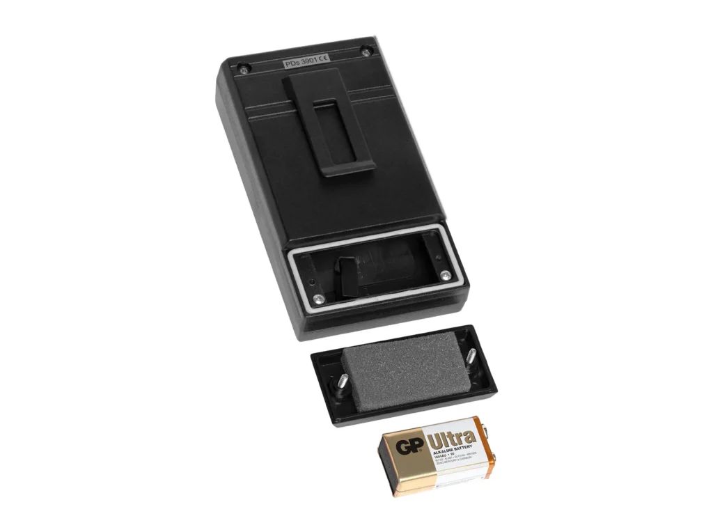 - 1 x alkalische Batterie Typ 6LF-22, 9V,