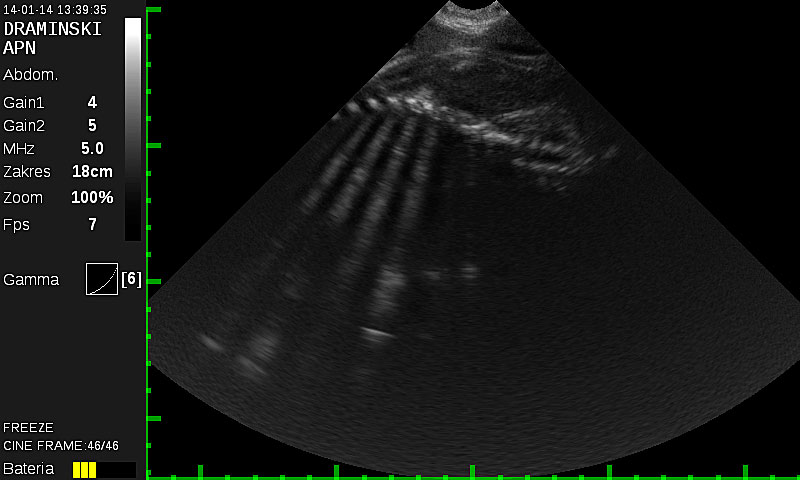 Auf dem 7-Zoll-LCD-Display mit Hintergrundbeleuchtung haben wir vollständig digitale Bildgebungstechniken (B, B+B, B+M) implementiert. Der Monitor verfügt über eine Helligkeitsanpassung. Dank der Verwendung einer Sonnenblende können Sie selbst bei direkter Sonneneinstrahlung das auf dem Ultraschallgerät angezeigte Bild deutlich erkennen.