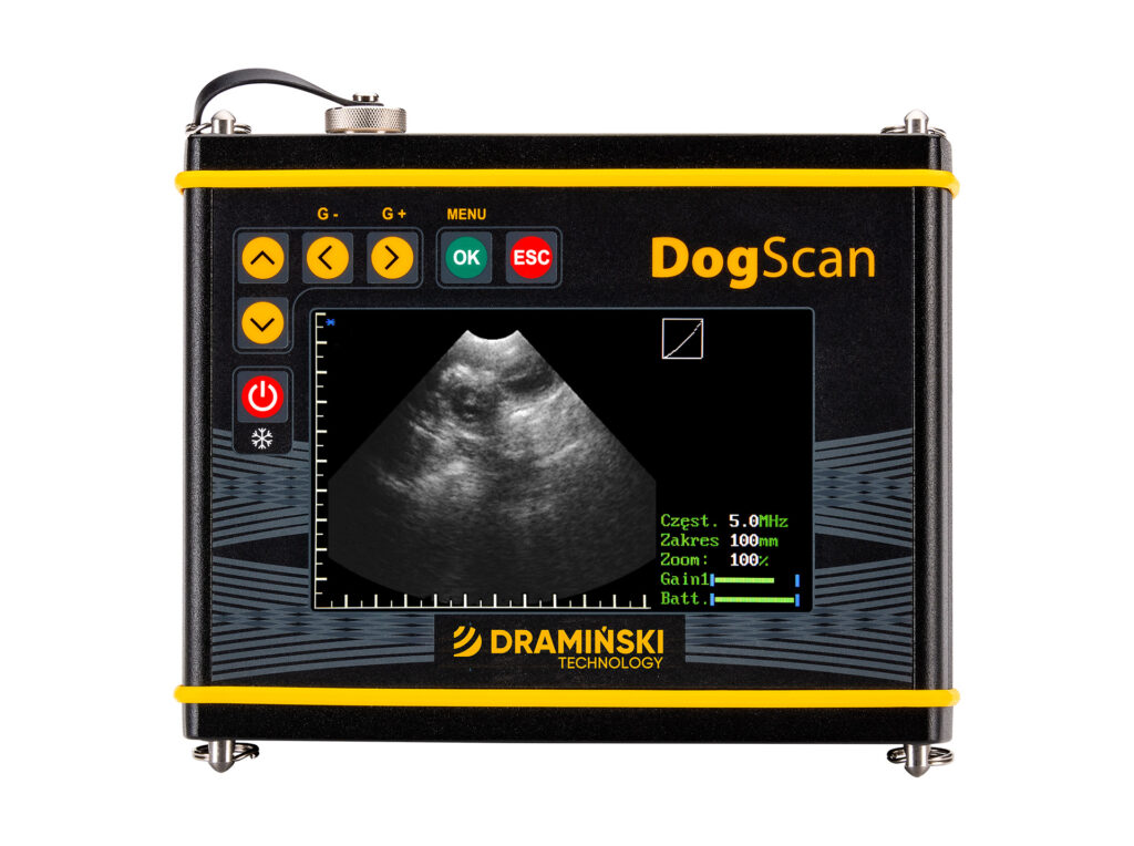 Der DRAMIŃSKI DogScan wurde speziell für Züchter entwickelt, um eine schnelle Trächtigkeitsdiagnose bei kleinen Tieren einfach durchführen zu können. Er verfügt über ein sehr intuitives Menü, das die eigenständige Durchführung der Untersuchungen ermöglicht. Mit der abdominalen Sonde, die mit dem DogScan kompatibel ist, können Sie die Trächtigkeit schnell durch die Bauchdecke bestätigen oder ausschließen.