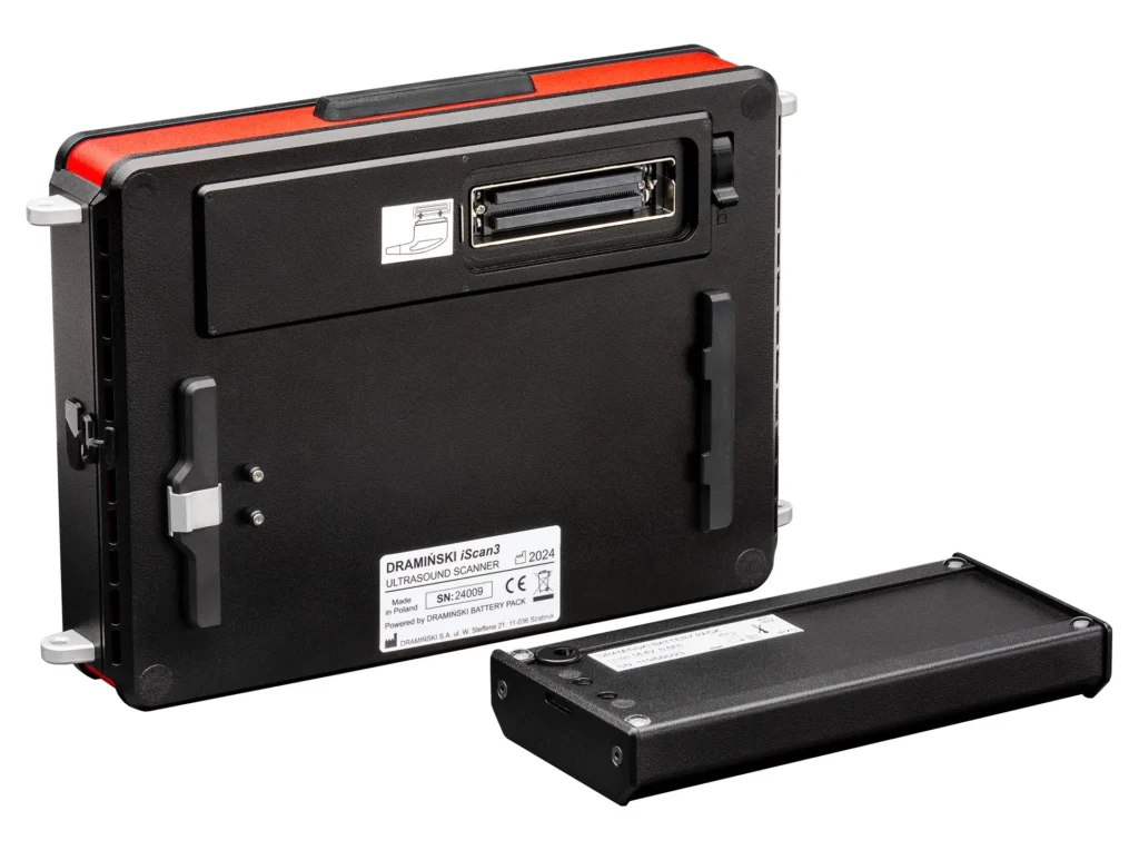 Bei der Entwicklung des Ultraschallgeräts haben wir moderne Technologien eingesetzt, die eine Gewichtsreduzierung ermöglichten. Das Gewicht des Ultraschallgeräts einschließlich Sonde und Akku beträgt nur 2,6 kg. Dadurch stellt die mehrstündige Arbeit mit dem tragbaren Gerät keine Belastung für den Tierarzt im Außeneinsatz dar.