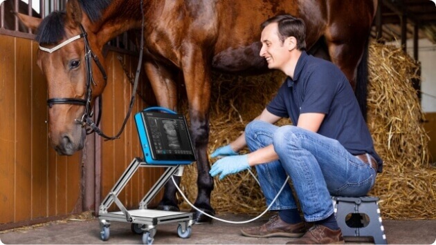 Premiere des fortschrittlichen Ultraschallgeräts BLUE für die Untersuchung von Kleintieren und Pferden.